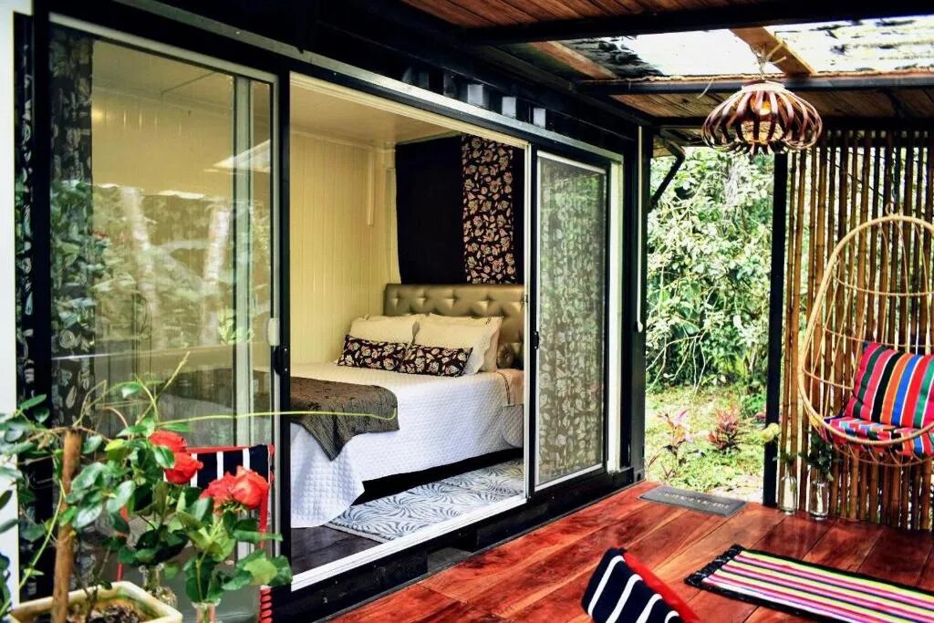 Las instalaciones cuentan con una refrescante piscina al aire libre, amplios jardines tropicales que atraen a colibríes y mariposas, y un restaurante que sirve lo mejor de la gastronomía local con ingredientes frescos. Nuestras habitaciones y bungalows están diseñados para el máximo confort, con suelos de parqué, techos a dos aguas y ventanales que permiten la entrada de luz natural, ofreciendo vistas espectaculares de la naturaleza circundante.