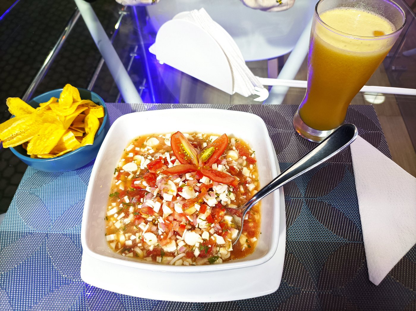 Ubicado en el vibrante corazón de Mindo, Ecuador, Serenity Mindo Lounge Bar es un refugio gastronómico que combina el encanto de la selva nublada con la sofisticación europea. Este establecimiento, recientemente renovado bajo la visión de su propietaria española, destaca por su diseño acogedor, protagonizado por un techo en un llamativo tono azul que complementa la luz natural que inunda el espacio.