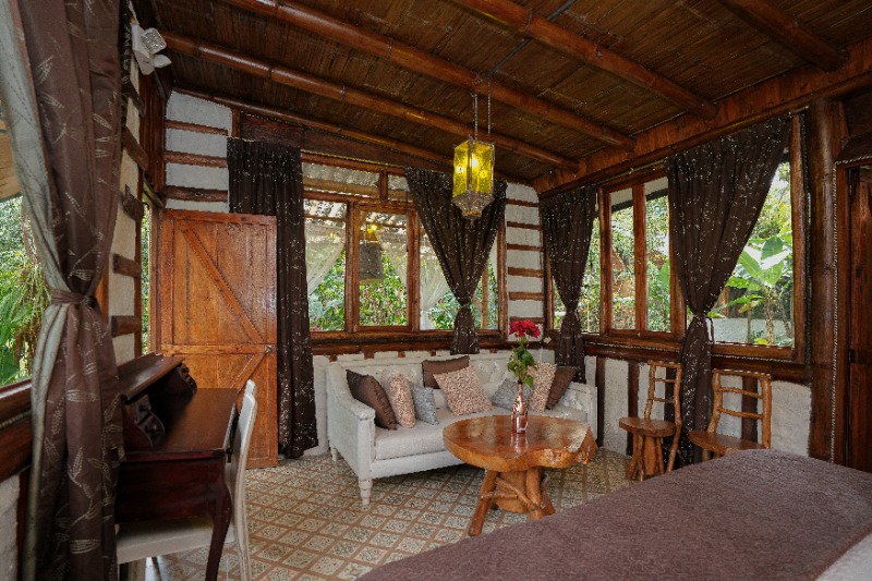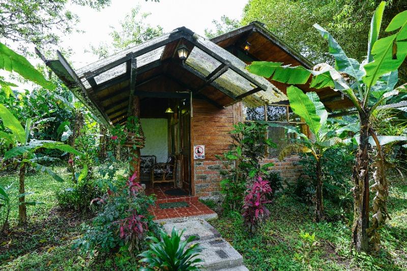 Las instalaciones cuentan con una refrescante piscina al aire libre, amplios jardines tropicales que atraen a colibríes y mariposas, y un restaurante que sirve lo mejor de la gastronomía local con ingredientes frescos. Nuestras habitaciones y bungalows están diseñados para el máximo confort, con suelos de parqué, techos a dos aguas y ventanales que permiten la entrada de luz natural, ofreciendo vistas espectaculares de la naturaleza circundante.